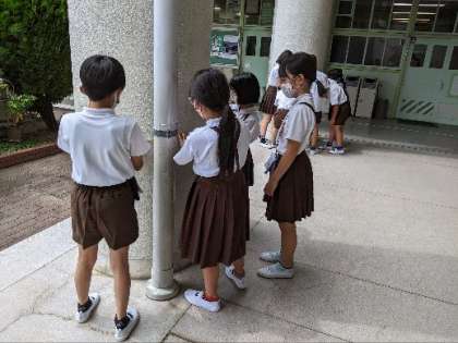 3年生は算数の学習で「長さ」の学習を行いました。円柱や木の幹などの周りの長さを図るには巻き尺を使うとよいことを学習しました。