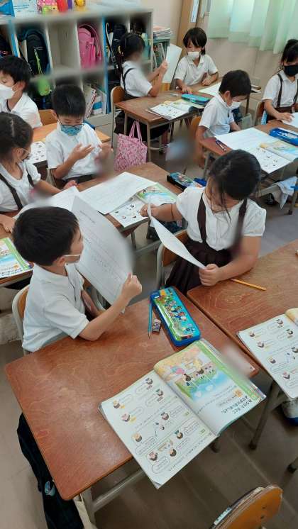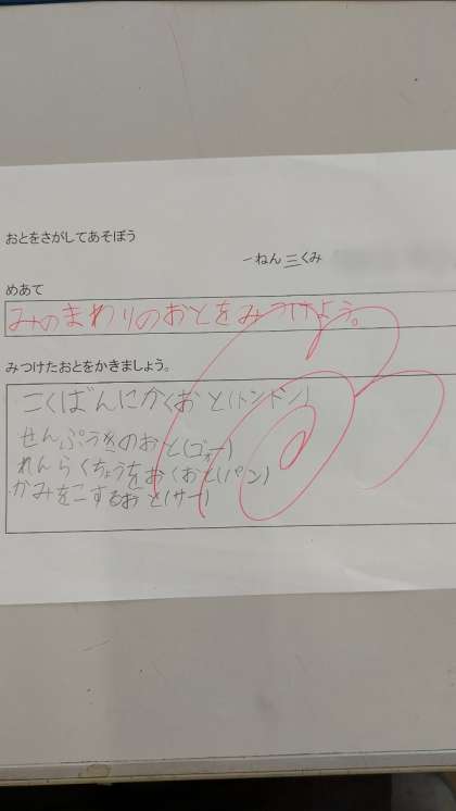 ペアで発表し合った時には、見つけた音の違いや音の表現の仕方の違いから「全然違う!」「同じだ」などの声が聞こえてきました。
