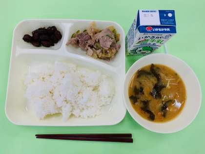甘辛焼きは、砂糖、塩、こい口しょうゆで下味をつけた豚肉に、たまねきとピーマンを合わせ、焼き物機で焼いています。肉と合わせることで、不足しがちな野菜を摂ることができます。