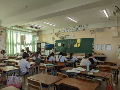 算数科の学習では、円の面積の求め方を学んでいます。応用問題では複雑な形の面積を既習の面積の求め方を使って解いていきました。