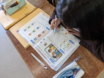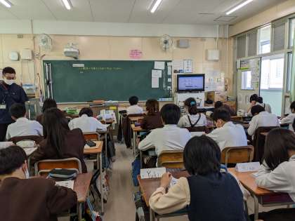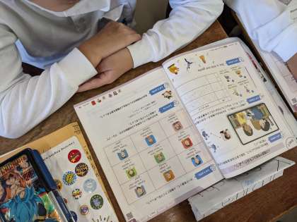 外国語の授業の様子です。人の職業や性格を英語で伝える練習をしました。