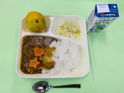 今日は、第2回ピッカピカ給食大作戦でした。この時期のみかんは、早生といってまだ緑色のものが多いですが、今日のみかんは甘みがありました。ラッキーにんじんも入って、全クラスが給食調理員さんからカードをもらうことができました!