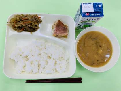 11月は、旬のきのこがたくさん登場します。今日は、なめこが入ったみそ汁でした。なめこは、ブナの切り株などに発生する、ぬめりのあるきのこです。秋には、天然のなめこが市場に出回ることがあるそうです。