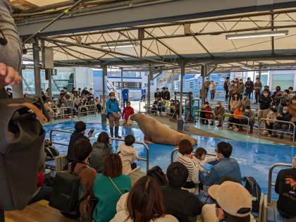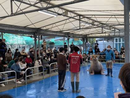 鳥羽水族館楽しんでいます。セイウチショーに参加しました。