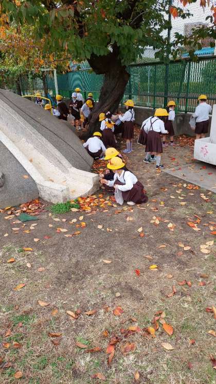 生活科の時間に、土曜授業の時に使う落ち葉を拾いにいきました。黄色や赤、大きいものや小さいもの、色々な落ち葉がありました。子どもたちは、綺麗な色の落ち葉を見つけて嬉しそうにしていました。