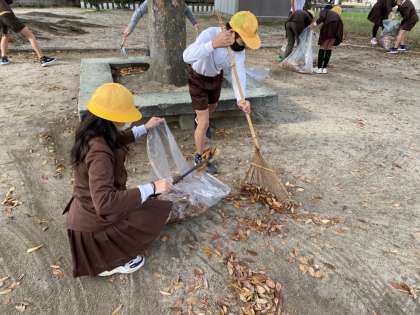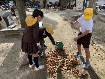 ふれあい清掃の様子です。子どもたちは張り切って清掃活動に取り組んでいました。地域の方々も「すごく早く片づいたね」と驚いていました。