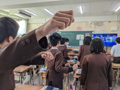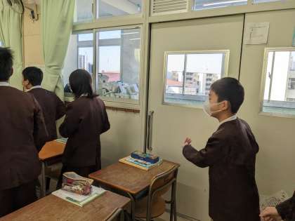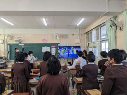 外国語の授業の様子です。クリスマスソングに合わせてダンスをしました。大きく体を動かして楽しんでいました。