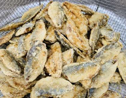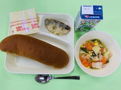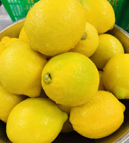 国産のレモンは、1月から2月が旬の食材です。今日は、あじに塩、こしょうで下味をつけ、でんぷんをつけてカラっと揚げた後、給食室で絞ったレモン汁を使ったマリネ液をかけています。酢と比べてまろやかな酸味が特長です。