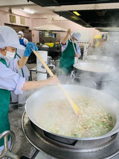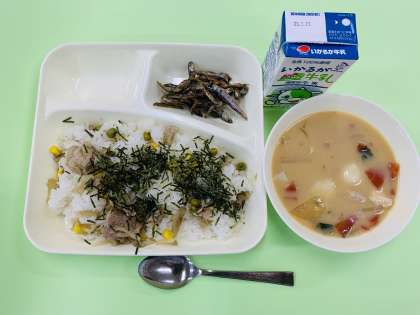 正月に食べられるぞう煮は、家庭や地域によりもちの形や味つけに違いがあります。大阪市の学校給食では、鶏肉やさといも、きんときにんじんを主材に、白みそで味つけし、丸い白玉もちを入れて作ります。