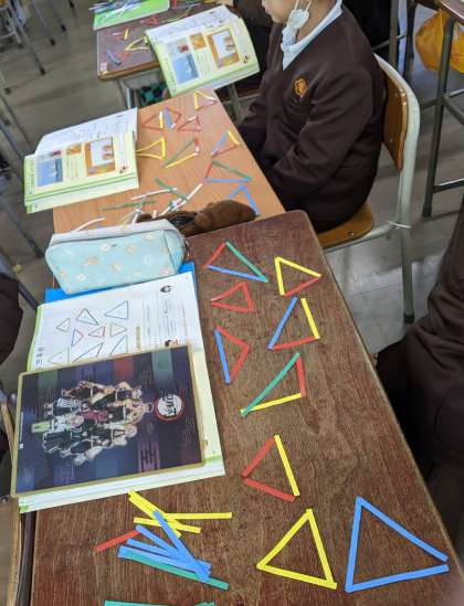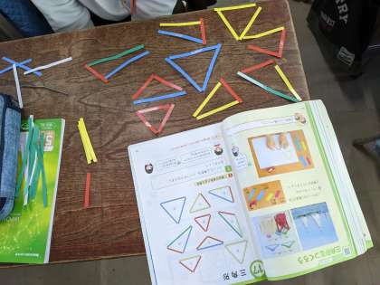 3年生では三角形の学習をしています。辺の長さによって、二等辺三角形や正三角形に分けられることを学習しました。