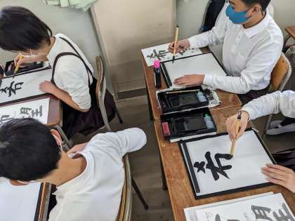 書き初めをしました。「希望の朝」を書きました。みんな真剣に書いていました。