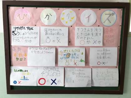 その美化委員会が「びかクイズ」を作って、事務室前の掲示板に掲示しています。
