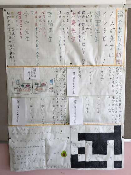 給食に関するインタビューやクイズ、クロスワードなど、とてもおもしろいです。