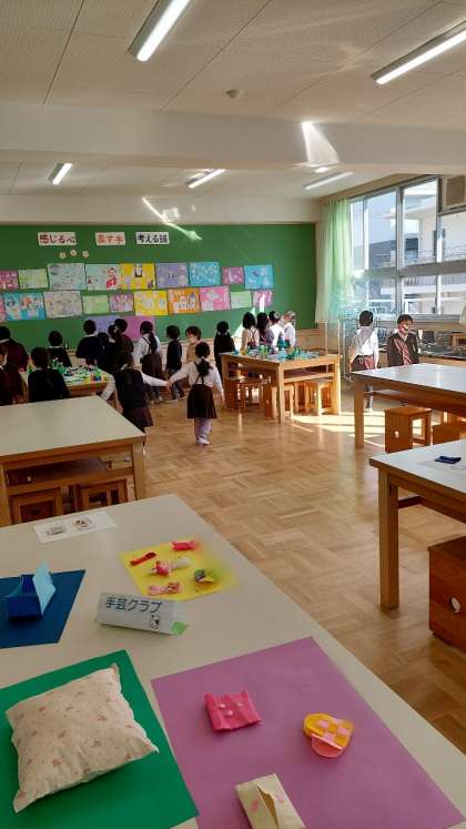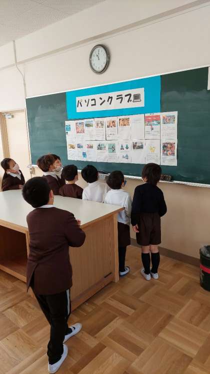 今日は、漫画クラブやパソコンクラブなどのクラブの作品展示を見に行きました。どのクラブの作品も素敵なものばかりで、子どもたちはすごく楽しそうにしていました。「パソコンクラブに入りたいな」や「自分もマンガクラブがいいなぁ」なども呟いていました。