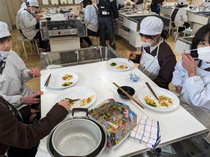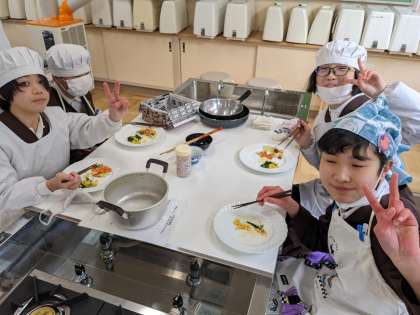 自分たちでつくった料理はとても美味しかったようです。また家でもつくりたいと言っていましたので、お家でもチャレンジしてみてください。