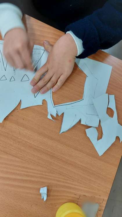 紙版画で鬼を作っていますが、今回の学習では、まゆ、鼻、口、きばを作りました。どんな鬼ができるのか楽しみです。