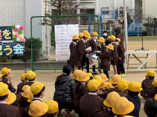 お世話になった6年生に感謝の気持ちを込めて、「6年生クイズ」をしたり、メッセージカードを渡したりしました。