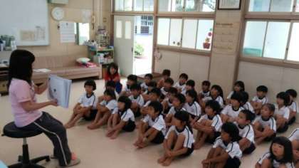 今回は、骨の働きや、背骨と姿勢との関係などを紙芝居で学びました。気がつくと丸くなっている背中…。子どもも大人も同じですよね。