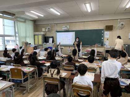 たくさんの子が手を挙げて発表しようとがんばっています!