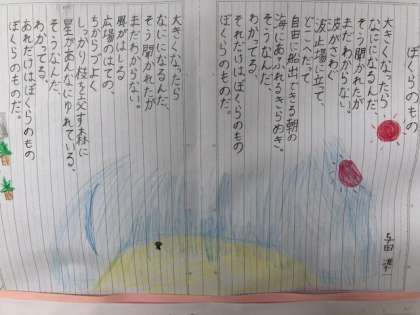 5年生の国語の教科書のとびらの詩「ぼくらのもの」の視写です。