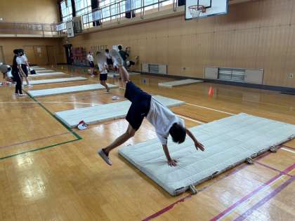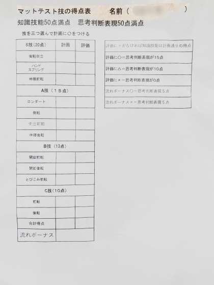 マット運動の学習の最後には、3つ技を組み合わせて、選んだ技の合計得点・完成度・技の流れなどを総合評価していきます!