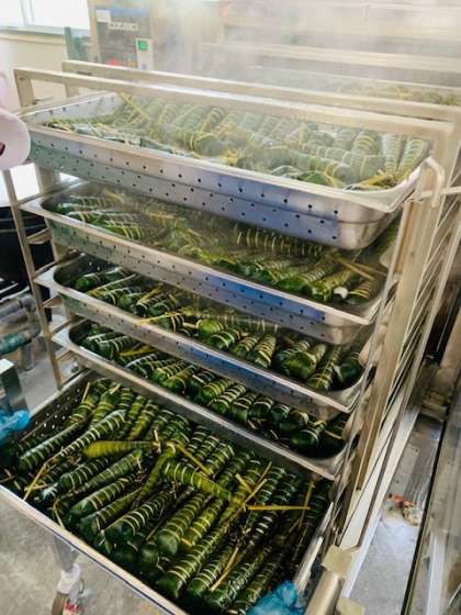 今日は、少し早いですが、子どもの日の行事献立でした。子ども達の健やかな成長を願って、給食室では700本のちまきを蒸しました。1年生では、ちまきを初めて食べる子ども達も多かったです。