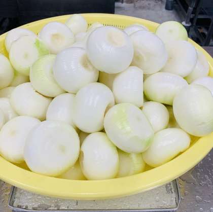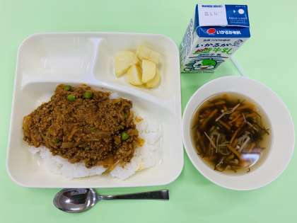 タコライスは、メキシコ料理の「タコス」の具をごはんにのせることから、この名前がついたそうです。沖縄県では人気のメニューで、今日はたまねぎがたっぷり36キログラムも入っていました。