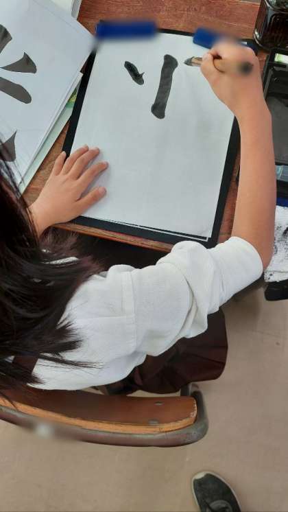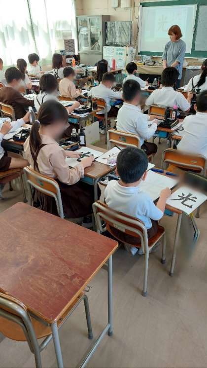 書写の学習では、今日から「光」という字を練習しています。自分でどんなところに気をつけて書くと上手に書けるのかを赤鉛筆でメモしたりしながら、取り組んでいました。