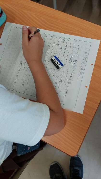 遠足の作文を書きました。どんなことを書こうかを考えたり、読み直しながら書いたり、集中して取り組んでいました。
