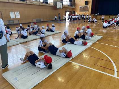 長座体前屈や反復横跳び、上体起こしなどの測定をしました。