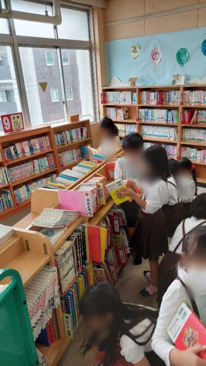 国語科では「たしかめながら話を聞こう」を学習しています。低学年におすすめする本を紹介することを通して、話の聞き方や質問の仕方などを学習していきます。今回は、図書の時間に、実際に紹介する本を探しに行きました。「文字が多いかなぁ」や「絵がいっぱいあった方がいいかなぁ」など、悩みながらも、低学年向けの本を探していました。