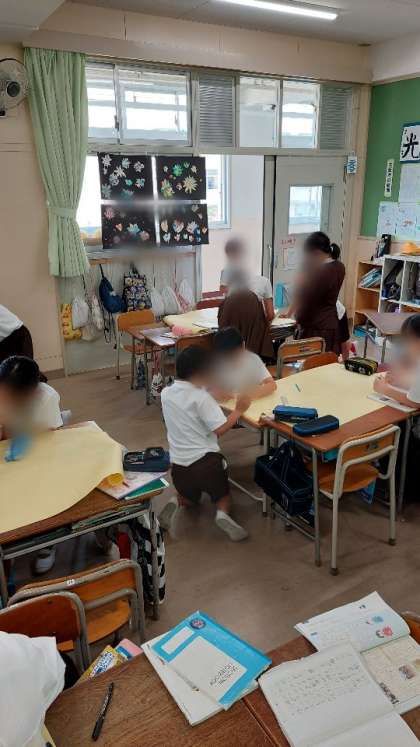 国語科で取り組んでいる地方新聞作りですが、今日は割り付けを班ごとに考えました。自分が書いた記事を見せ合い、誰の記事をどのくらいの大きさで載せるのかを考えたり、タイトルやメンバーの名前を書いたりもしました。