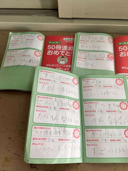 1〜4年生は100冊、5,6年生は50冊達成すると、朝日新聞(5,6年生)や朝日新聞デジタル(全学年)に達成者として名前が載ります。