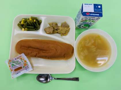 白あんなどの材料にも使われるてぼ豆は、いんげん豆のひとつです。今日は、下ゆでした後にスープに入れています。たんぱく質や炭水化物の他、食物繊維も摂ることができます。