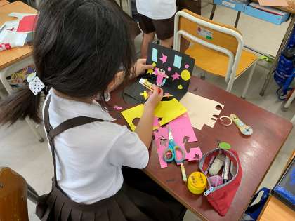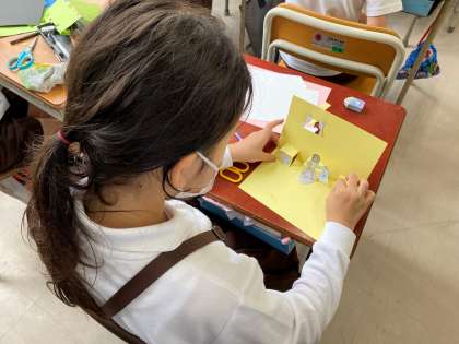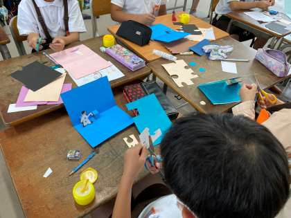 「やってみたいこと」というテーマで、児童それぞれが思い思いに作品を作っています。