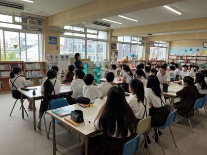 グループで一人ひとり違うワークシートに取り組み、ポプラディアを使ってクイズに取り組んでいきます。昨年度に続き2回目なので、スムーズに調べることができていました。