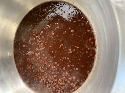 金時豆は、釜でことこと煮て、やわらかくなったら砂糖、塩、こいくちしょうゆで味つけしています。骨や歯を強くするカルシウムのほか、便通をよくする食物繊維も豊富です。