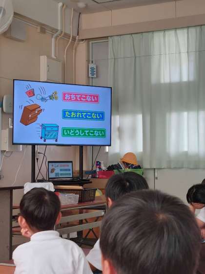 お家や学校でもし地震が起こったら、何が危険か、どう身を守ったらよいかなどをしっかり考えるることができました。