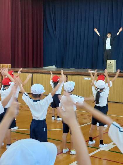 ダンスの振り付けをまねして、元気よく踊っていました。