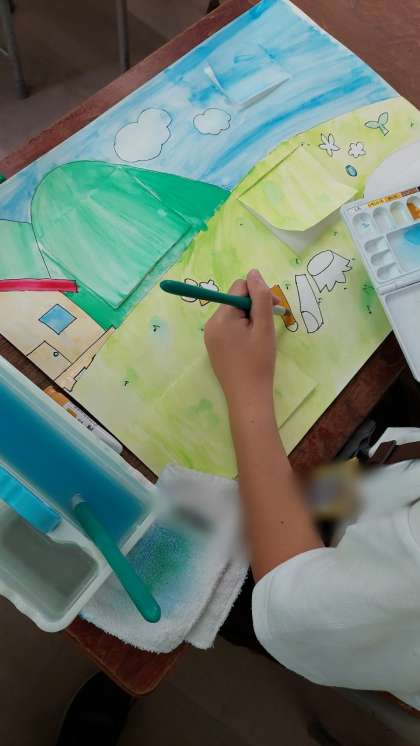 今回の学習では、扉をつけた絵に色を塗りました。現実の世界に色がつき、残すは扉の向こう側の世界です。どんな世界が広がった絵が完成するのか、楽しみです。