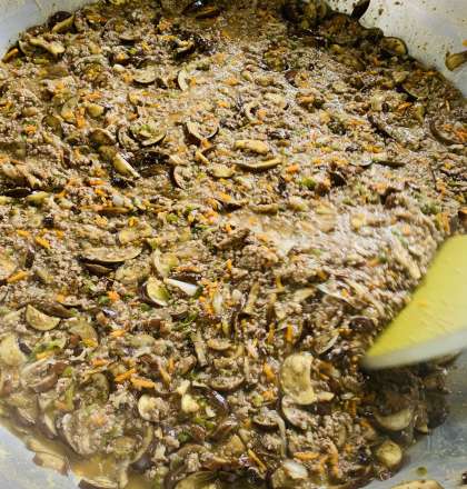 マーボーなすは、なすと牛ひき肉と豚ひき肉、たまねぎなどの野菜を煮、トウバンジャンやこいくちしょうゆ、赤みそで味つけしています。なすは切った後、あくをぬくため一度ゆでています。ごはんによく合う1品でした。