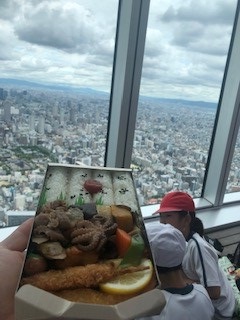 お弁当は58階の展望デッキから、大阪の街を眺めながら食べました。