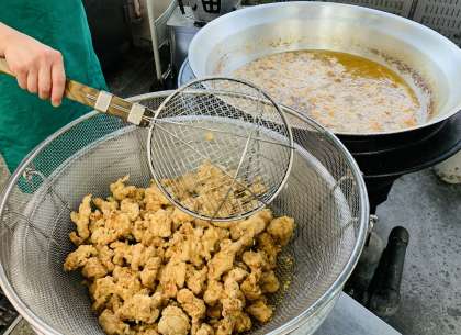 たつたあげは、魚や肉にしょうが汁、料理酒、しょうゆで下味をつけ、でんぷんをまぶして揚げた料理をいいます。揚げたときにしょうゆの色が赤くなり、白い衣が浮く様子が、紅葉が流れる竜田川ににていることから、この名前がついたといいわれています。