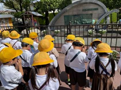 学校で学習した「ライオンのいなくなったどうぶつえん」を思い出して、石碑の前で黙祷しました。