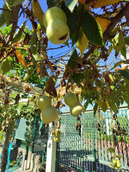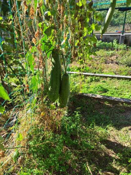 春に植えたひょうたんとヘチマが大きく育ちました。