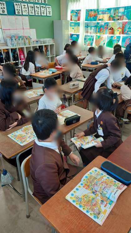 外国語活動の時間に、学習した小文字のアルファベットを使って、アルファベットゲームをしました。グループを作り、1人最大3つまで順にアルファベットを言っていき、最後のZになった人が負けというゲームです。子どもたちはとても楽しそうに学習に参加していました。