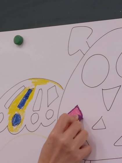「薄い色からぬること」「周りをふちどってからぬること」に気を付けながら、子どもたちは大きな画用紙にパスで色をぬっていました。