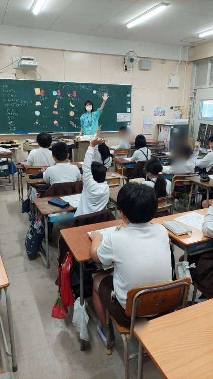 栄養の先生におやつをテーマにした授業をしていただきました。普段食べているおやつはお菓子が多いこと、そのお菓子の多くには必要以上のエネルギーがあること、健康に良いおやつは何かなど様々なことを考え、学習しました。