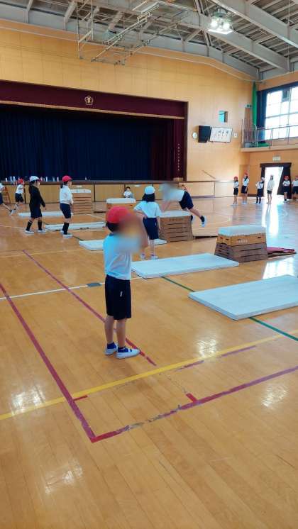 体育の学習で「跳び箱」をしました。グループごとに協力して準備や片付けをしたり、自分がチャレンジしたい段数を考えて跳んだりしました。次の人が跳ぶときには、その人の手のつきかた、踏み切り、勢い、着地など様々な点に注目して見て、出来ていた点を伝えたりアドバイスをしたりしました。
