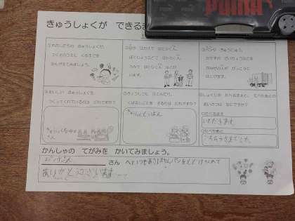 牛乳やさんや、パン屋さん、給食調理員さんたちに感謝のお手紙を書きました。
